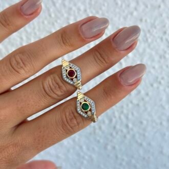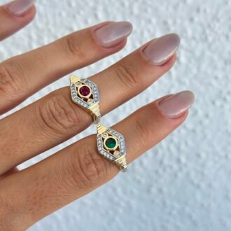 • Sıralı Bordo Taşlı Vintage Yüzük