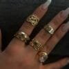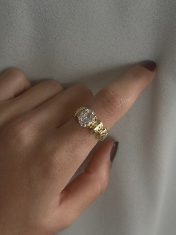Bombeli Beyaz Taşlı Vintage Yüzük