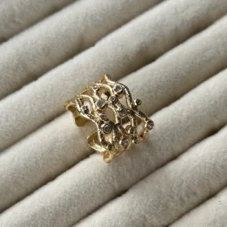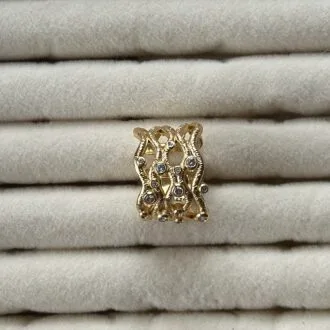 Ürünümüz, saf pirinçten el işçiliğiyle üretilmiştir ve yüzeyi lak kaplama ile korunmuştur. Alt kısmı tüm parmak ölçülerine uyum sağlayacak şekilde ayarlanabilir, böylece size en uygun şekilde kullanılabilir.