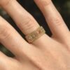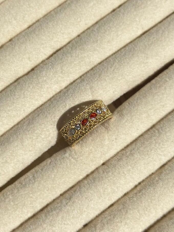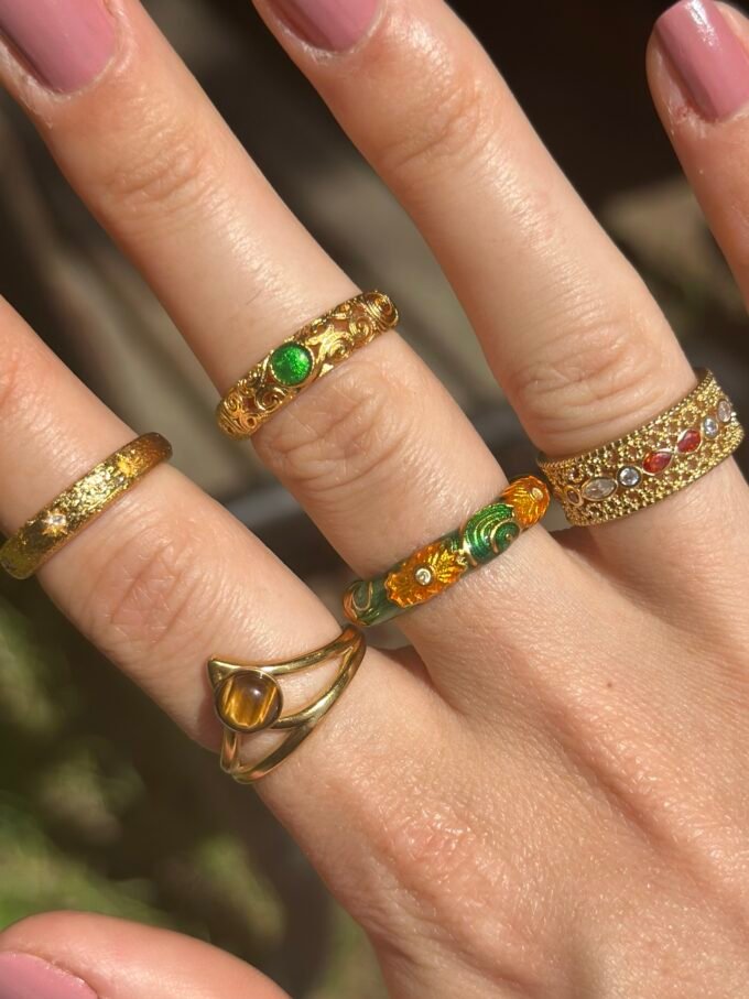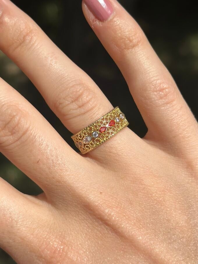 Ürünümüz, saf pirinçten el işçiliğiyle üretilmiştir ve yüzeyi lak kaplama ile korunmuştur. Alt kısmı tüm parmak ölçülerine uyum sağlayacak şekilde ayarlanabilir, böylece size en uygun şekilde kullanılabilir.