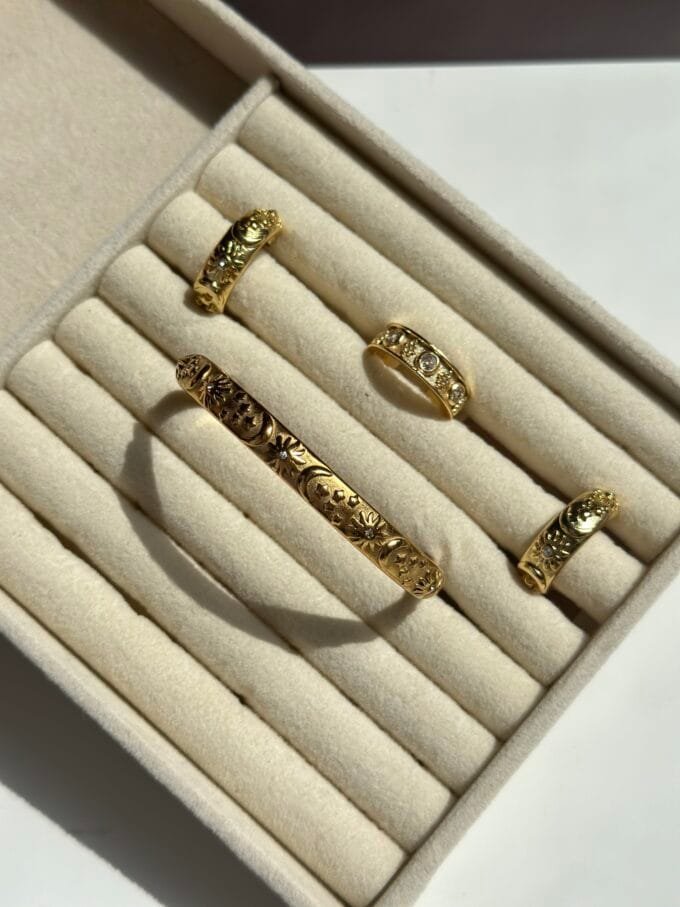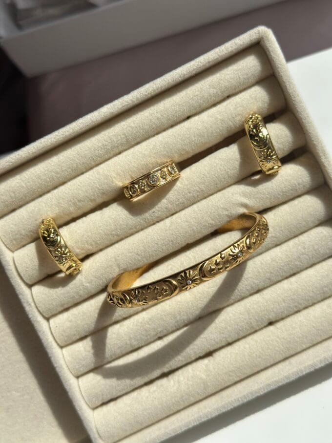 Bileklik,küpe ve yüzük olarak 3parçadan oluşur.
