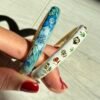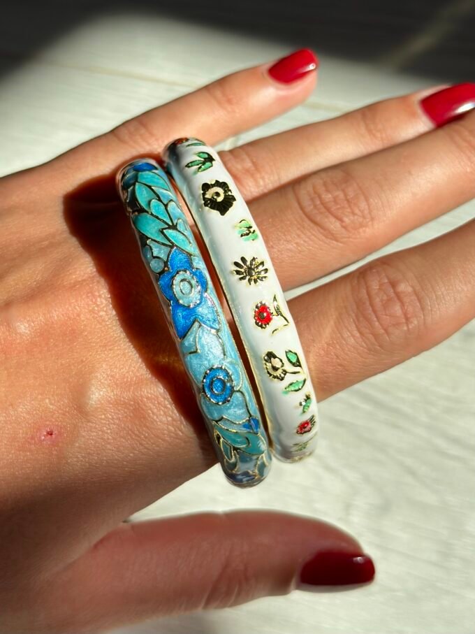 Mavi ve beyazın ahengiyle bezenmiş bu zarif bileklik, adeta serin bir bahar sabahını anımsatıyor.