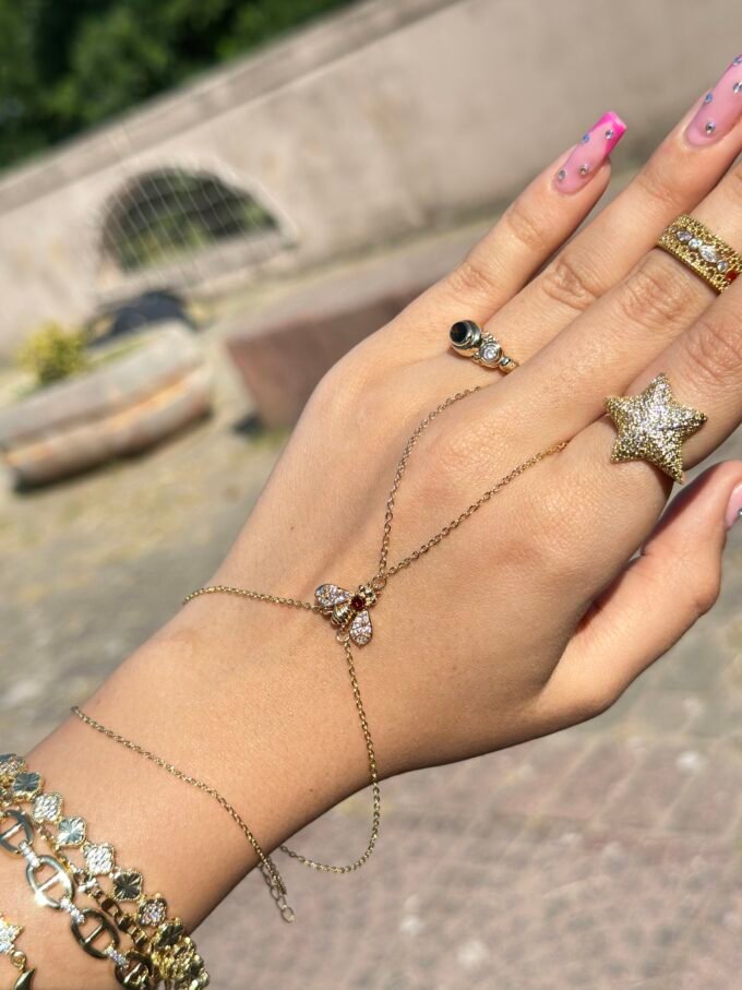 Bileğinde zarifçe uçuşan bir arı gibi… hem tatlı hem iddialı. 🍯💫