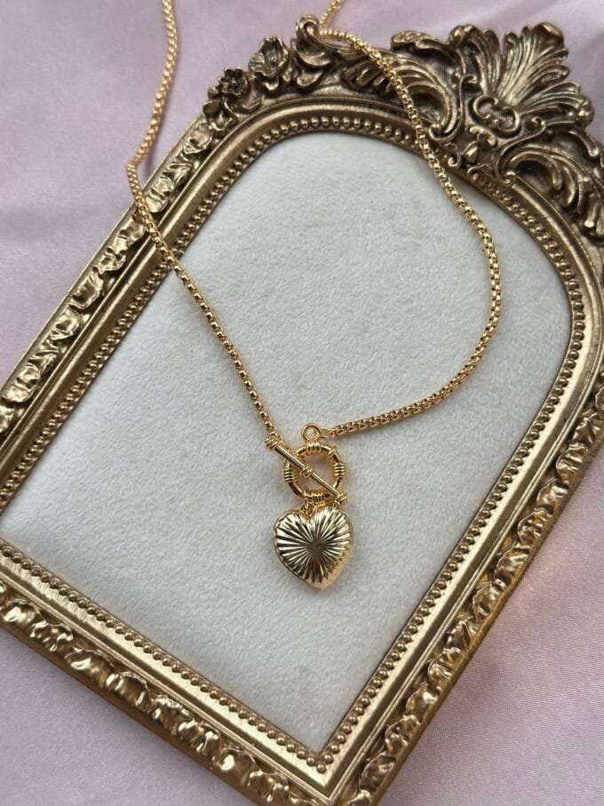 Kalp Charmlı Pirinç Kolye